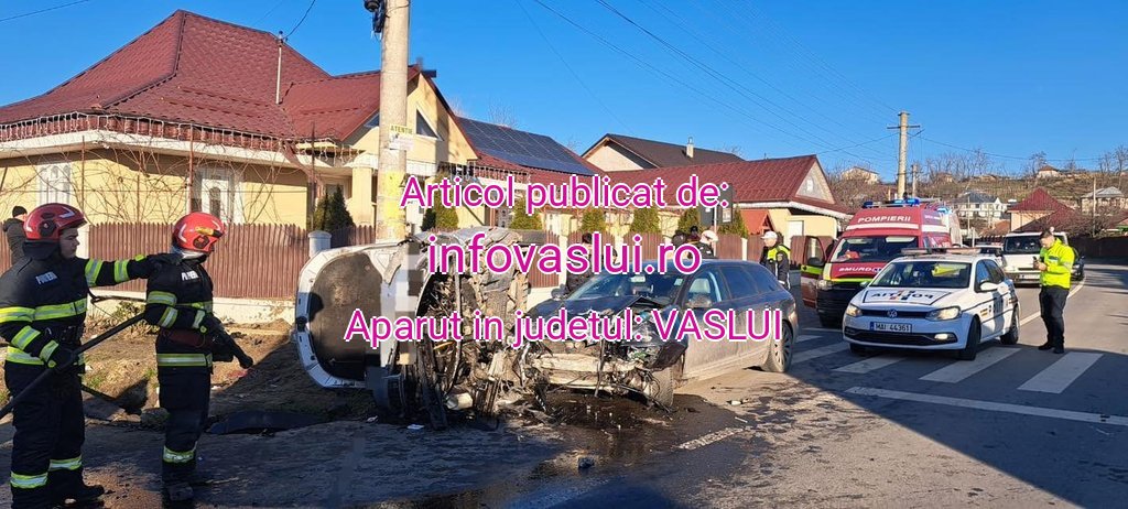 Un accident rutier grav s-a produs în cursul zilei de astăzi în satul Ivești, unde două autoturisme au fost implicate într-o coliziune violentă. La fața locului au intervenit de urgență echipaje ale Detașamentul de Pompieri Bârlad, pentru asigurarea zonei și acordarea primului ajutor.