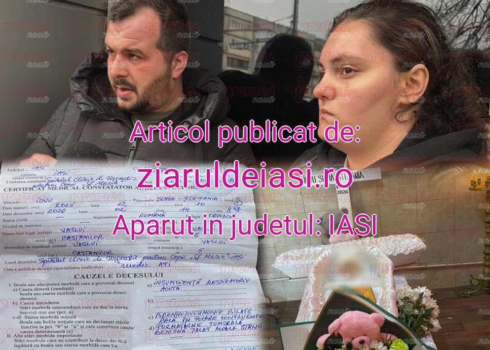 Sursa: https://www.ziaruldeiasi.ro/stiri/acuze-de-culpa-medicala-o-fetita-de-doua-luni-a-decedat-la-spitalul-de-copii-din-iasi-formatiuni-tumorale-care-nu-fusesera-identificate-anterior–1836052.html