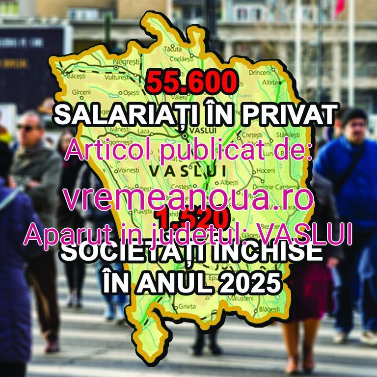 SALARIATI MAI PUTINI…La sfârsitul anului 2025, judetul Vaslui avea cei mai putini angajati din regiunea Moldovei, doar 55.600 persoane. În celelalte judete din Moldova, situatia se prezenta astfel: Bacãu – 120.600 salariati; Botosani – 59.900 mii salariati; Iasi – 189.700 salariati; Neamt – 88.200 salariati si Suceava – 114.000 salariati. Potrivit datelor oficiale, în perioada ianuarie-noiembrie 2025, la nivelul judetului Vaslui, au iesit de pe piata localã nu mai putin de 1.502 de societãti. Vorbim despre 234 de suspendãri, 487 de dizolvãri, în timp ce 781 firme au fost radiate din Registrul Comertului.