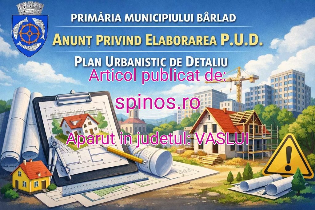 S.C. MON AMI S.R.L., cu sediul în str. Popa Șapcă, nr. 2B, municipiul Bârlad, județul Vaslui, reprezentată de doamna PRISECARU DANIELA, cu domiciliul în str. Barbu Ștefănescu Delavrancea, nr. 16-17, municipiul Bârlad, județul Vaslui, inițiază demararea procesului de informare și consultare a publicului în vederea elaborării Planului Urbanistic Zonal „CONSTRUIRE IMOBIL P+1E CU DESTINAȚIA SPAȚIU COMERCIAL LA PARTER ȘI LOCUINȚĂ LA ETAJ”, pentru terenul proprietate privată situat în Bulevardul Cetatea de Pământ, nr. 51, municipiul Bârlad, județul Vaslui, etapă ce se va desfășura în perioada 01.04.2026 – 15.04.2026.
