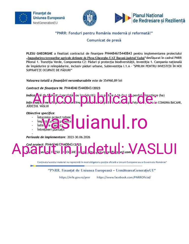 Anunț de presă „Împădurirea terenurilor agricole deținute de Plesu Gheorghe-UAT Bacani-judetul Vaslui” vasluianul.ro 3 noiembrie 2025 Acțiune FacebookTwitterPinterestWhatsApp Anunț de presă „Împădurirea terenurilor agricole deținute de Plesu Gheorghe-UAT Bacani-judetul Vaslui” Sursa: https://vasluianul.ro/anunt-de-presa-impadurirea-terenurilor-agricole-detinute-de-plesu-gheorghe-uat-bacani-judetul-vaslui/ Acțiune FacebookTwitterPinterestWhatsApp Ultimă oră vremeanoua.ro Aproape trei sferturi dintre comunele vasluiene nu își pot susține cheltuielile administrative Robo Stiri - 3 noiembrie 2025 vremeanoua.ro Toate bovinele din județul Vaslui vor fi vaccinate împotriva rabiei, dar rămâne de văzut când, fiindcă bani nu sunt Robo Stiri - 3 noiembrie 2025 vremeanoua.ro O „rotiță” importantă din agrenajul mitei în portbagaj primite de Buzatu a fost audiată la Tribunal. Iar a intervenit judecătoarea cu cenzura Robo Stiri - 3 noiembrie 2025 vremeanoua.ro Bătaie în familie, la Fălciu Robo Stiri - 3 noiembrie 2025 Același autor vasluianul.ro Accident produs din vina unui șofer beat, pe DN 24, la Satu Nou 3 noiembrie 2025 vasluianul.ro Spargere în buricul Vasluiului, la doi pași de biroul primarului Braniște (VIDEO) 3 noiembrie 2025 vasluianul.ro La Coroiești, un șofer beat a refuzat să oprească la semnalele polițiștilor 3 noiembrie 2025 vasluianul.ro Tractorist din Muntenii de Sus, prins fără permis pe străzile Vasluiului 3 noiembrie 2025