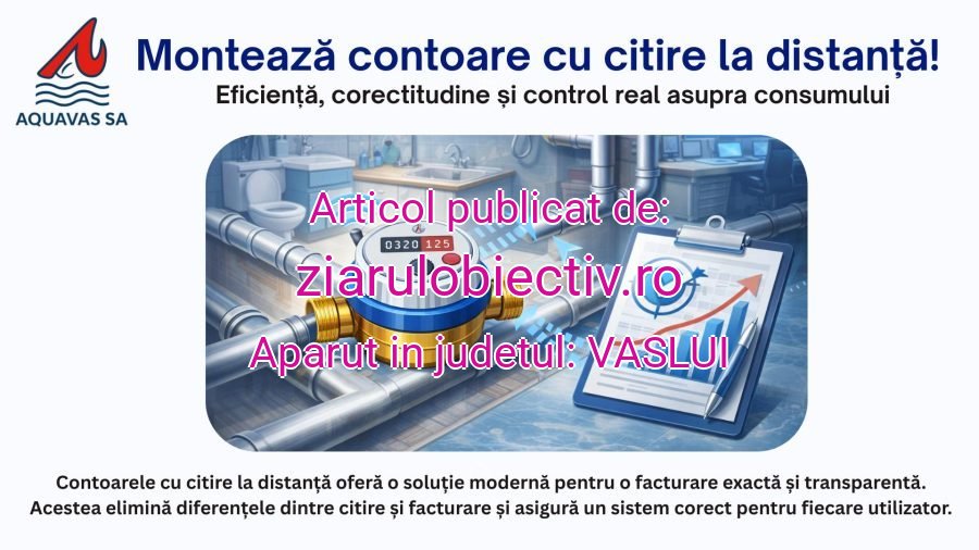 SC Aquavas Vaslui încearcă să mute relația cu abonații într-o zonă mai clară și mai predictibilă, prin promovarea contoarelor cu citire la distanță, o soluție pe care operatorul o prezintă drept mai corectă, mai eficientă și mai transparentă pentru facturarea consumului de apă.