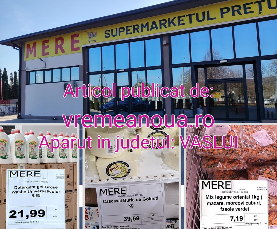 EXISTÃ SOLUTII SI PENTRU CEI CU VENITURI MICI … În nebunia care a cuprins România, privind preturile la alimente, detergenti, bãuturi sau produse de igienã, cautã magazinul MERE din Vaslui. Lângã Silver Mall Vaslui, pe strada Stefan cel Mare, nr. 275, gãsesti magazinul preturilor mici. Secretele acestei companii de retail, care vine cu preturile normale, pe care hipermarketurile mari le aveau acum 2-3 ani sunt urmãtoarele: vinde produse direct de la producãtori, în special de la cei care nu alocã fonduri mari pentru publicitate si reclamã, marfa se vinde direct de pe palet, fãrã costuri de pus în raft si nu sunt lacomi, precum ceilalti. Pentru cã începe Sãptãmâna Mare si multã lume tine post, vã dãm câteva exemple de alimente specifice, pentru a vedea cã si cei care nu-si permit luxul de a merge la hirpermarketurile cu care televiziunile te bombardeazã cu tot felul de reclame, pot sã-si facã cumpãrãturile cu bani putini: