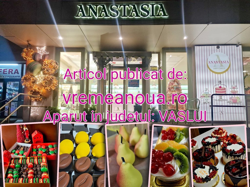 MINUNĂȚII CULINARE… Simfonie de culoare, gust și frumusețe! Așa se pot defini cofetăriile Anastasia Vip Cakes de la Bârlad, atât cea din zona Confecțiilor, care are și un aer parizian, cât și cea din incinta de la Kaufland. Acum, nu trebuie să mai bați cale lungă la Paris și nici măcar până la București, pentru a vedea ultimele noutăți în materiale de cofetărie. Este de ajuns să mergi la Bârlad, la Anastasia Vip Cakes, să încerci Macaronsul cu inserție de fructe, Choux Craquelin, Ciocolata Dubai, Ciocolata Angel Hair (cu vată de zahăr) sau bomboanele Brigadeiro. Cât stai în cofetărie te și întrebi dacă nu ești cumva la Paris, atât de fermecătoare este întreaga atmosferă din jur, dar când vezi prețurile, care sunt de trei ori mai mici decât la București, de exemplu, îți dai seama că ești la Bârlad, în cel mai savuros și mai primitor loc. Echipa dulce de la Anastasia Vip Cakes, are cei mai inimoși și implicați angajați, fie ei cofetari, vânzătoare, contabili sau șoferi. Ei demonstrează că, prin pasiune, știință și artă, dar și prin hărnicia de care dau dovadă, că poți ajunge la performanțe admirabile în acest domeniu deloc ușor.