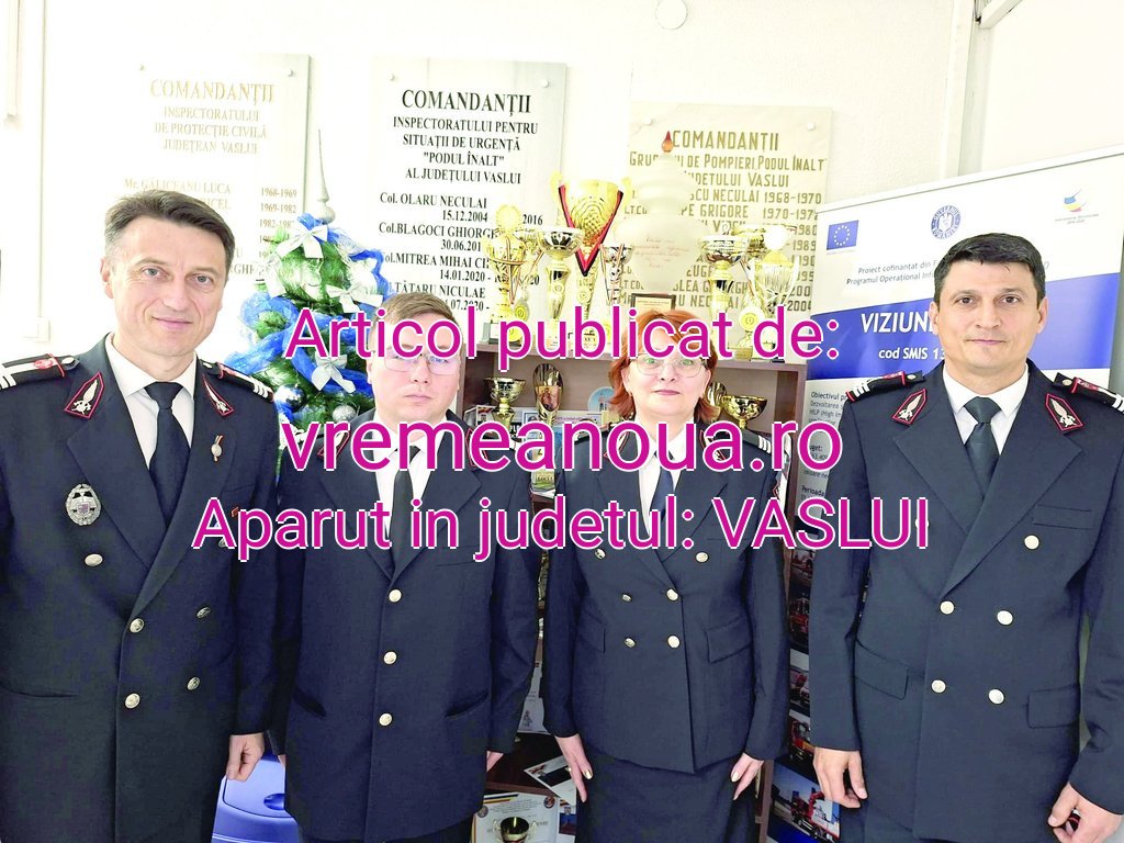 AVANSÃRI… Începând cu 1 Decembrie, Detasamentul de pompieri Bârlad are o nouã conducere în persoana cãpitanului Silviu Hutu, comandant, si a locotenentului Dragos Saviuc, care este loctiitor. Si tot cu ocazia Zilei Nationale a României, 9 ofiteri si subofiteri au fost înaintati în grad, înainte de termen. „Avansarea lor reprezintã o apreciere fireascã pentru eforturile depuse în slujba comunitãtii si pentru modul exemplar în care rãspund, zi de zi, provocãrilor din teren. Le dorim mult succes în noile functii si putere de muncã în responsabilitãtile pe care le preiau, cu încrederea cã vor continua sã conducã si sã inspire colectivul prin profesionalism si echilibru. Transmitem tuturor sincere felicitãri, mult succes în continuare si aceeasi determinare de a rãmâne un model de curaj, dedicare si respect fatã de uniformã”, au transmis reprezentantii ISU Vaslui. Iatã care sunt cadrele militare care au fost înaintate în grad: colonelul Bordeianu Constantin Alin (centrul operational), cãpitan Munteanu Mihaela (psihologie), plt. Diaconu Mihãitã (serviciul logistic), plt. adj. sef Maftei Cãtãlin Ionut (Detasamentul de pompieri Vaslui), plt.adj. sef Aelenei Cãtãlin Dan (detasamentul de pompieri Vaslui), plt. adj. sef Rusu Florin Mihai (detasamentul Bârlad), plt. adj. sef Bornaz Silviu (detasamentul Bârlad), plt. Neamtu Alexandru (sectia de pompieri Husi), plt. adj. Anei Vlad C-tin (sectia de pompieri Negresti).