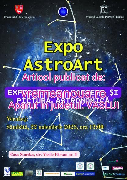 … Sectia „Stiintele Universului si ale Vietii” din cadrul Muzeului „Vasile Pârvan” din Bârlad va organiza, sâmbãtã, 22 noiembrie 2025, ora 12:00, la Casa Sturdza, vernisajul expozitiei temporare AstroArt. Expozitia va fi alcãtuitã din machete si desene astronomice realizate în ultimii zece ani în cadrul scolilor de varã „Descoperã Universul!”, organizate de cãtre Sectia de Astronomie si Astroclubul „Perseus” Bârlad. „Prin combinatia dintre stiintã si artã, Expo AstroArt îsi propune sã trezeascã interesul pentru Univers, sã stimuleze creativitatea si sã aducã publicul mai aproape de misterele cerului. La vernisaj, vor fi invitati membrii Astroclubului „Perseus” Bârlad – autorii celor mai multe dintre lucrãri – precum si alti colaboratori din tarã implicati în organizarea evenimentului, cum ar fi Astroclubul „Phoenix” din cadrul Bibliotecii Publice din comuna Popricani, judetul Iasi, si Astroclubul „Aquarius” din cadrul Bibliotecii Publice din comuna Ciurea, judetul Iasi. Acestia din urmã vor contribui si cu exponate în cadrul evenimentului organizat de institutia noastrã”, au transmis organizatorii.