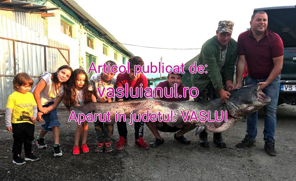 Maiestuosul exemplar a fost pescuit din barajele de la Cârja în urmă cu câteva luni, spre marea bucurie a copiilor din zonă, care au ținut să se fotografieze cu acest monstru al bălților de la Prut.