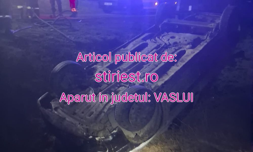 Un accident rutier s-a produs la intrarea în localitatea Lipovăț, județul Vaslui, unde un autoturism s-a răsturnat în afara părții carosabile. Potrivit primelor informații, în autoturism s-ar fi aflat două persoane. La fața locului a intervenit Detașamentul de Pompieri Vaslui cu o autospecială de stingere și un echipaj de prim ajutor, în total 8 militari. Ajunse la locul intervenției, echipajele au confirmat că autoturismul era răsturnat în afara carosabilului. Pompierii au asigurat măsurile de prevenire și stingere a incendiilor și au evaluat situația pentru a elimina orice pericol suplimentar. Intervenția este în dinamică, iar autoritățile urmează să stabilească împrejurările exacte în care s-a produs accidentul.