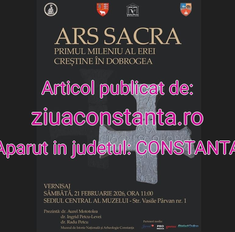 Muzeul de Istorie Națională și Arheologie Constanța, sub egida Consiliului Județean Constanța, în parteneriat cu Muzeul „Vasile Pârvan” Bârlad, aflat sub egida Consiliului Județean Vaslui, invită publicul la vernisajul expoziției „ARS SACRA. Primul mileniu al erei creștine în Dobrogea”.Evenimentul va avea loc sâmbătă, 21 februarie 2026, ora 11:00, la sediul muzeului gazdă, din strada Vasile Pârvan numărul 1, etajul I, municipiul Bârlad.
