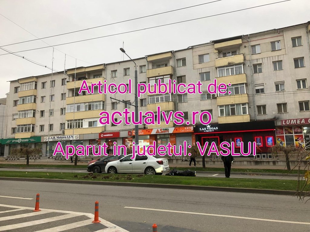 Accident rutier în centrul municipiului Vaslui, petrecut în această după amiază, pe strada Ștefan cel Mare, în zona fostului cinematograf Independența.