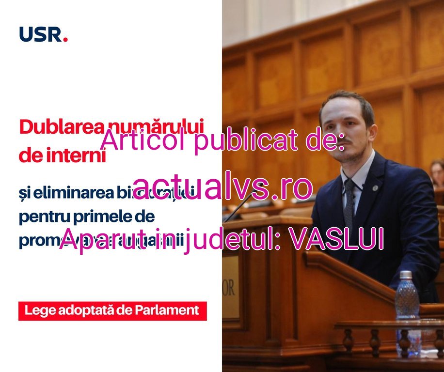 Tinerii care vor să-și înceapă cariera cu experiență practică au, de astăzi, motive serioase de optimism. Parlamentul a adoptat legea inițiată de USR prin care numărul de internshipuri disponibile în instituțiile publice, companiile de stat și firmele private se dublează, pragul crescând de la 5% la 10% din totalul angajaților.