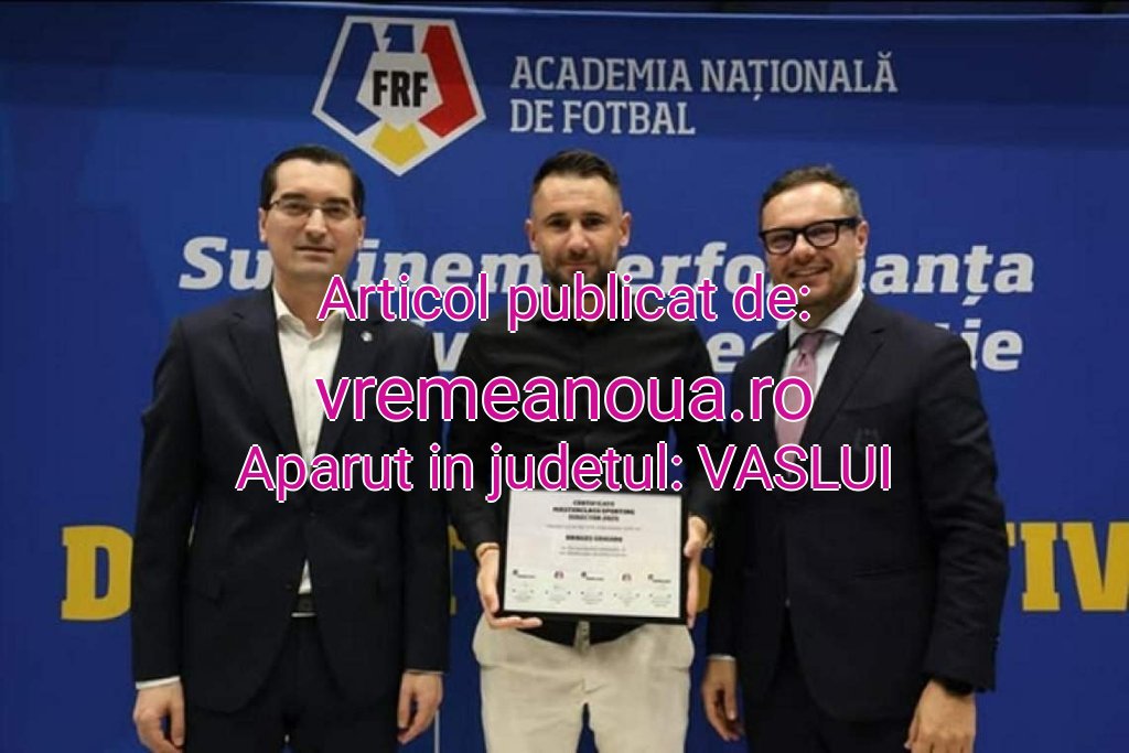 REUȘITĂ… Vasluianul Dragoș Grigore, căpitanul echipei CSM Vaslui, face un pas important în dezvoltarea sa profesională, după ce a absolvit cu succes cursul de director sportiv organizat de Federația Română de Fotbal.