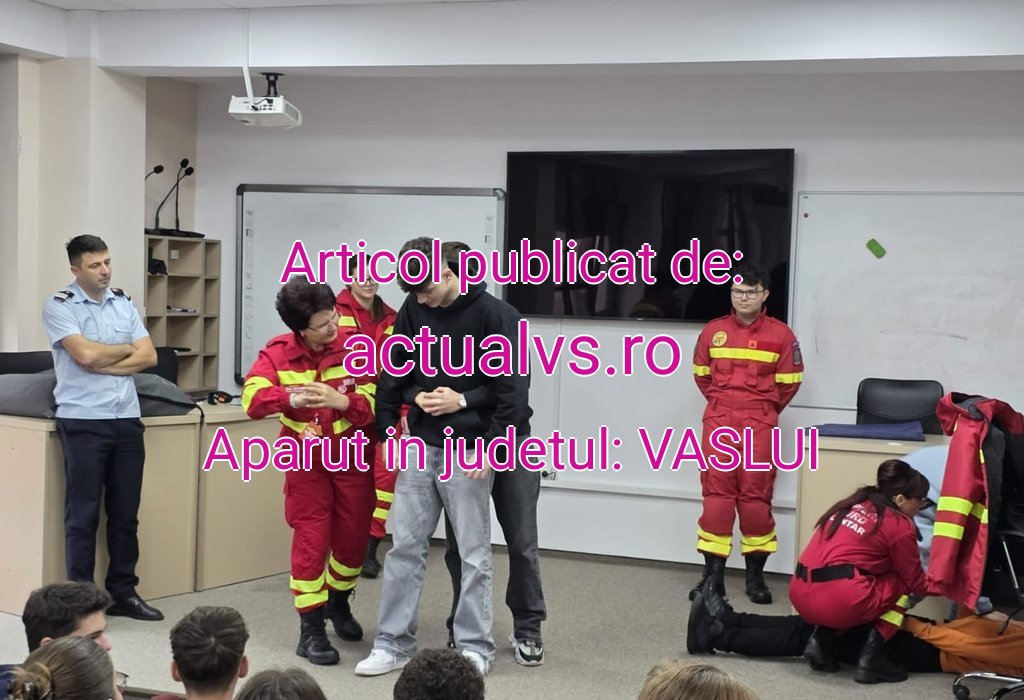 Astăzi, pompierii și voluntarii din cadrul Inspectoratului pentru Situații de Urgență „Podul Înalt” au desfășurat o acțiune de informare preventivă la Liceul „Mihail Kogălniceanu” din municipiul Vaslui.
