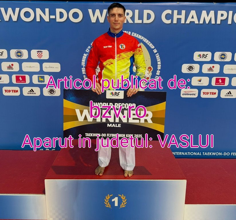 Sportivul vasluian, component al lotului național al României, a reușit o performanță remarcabilă:🥇Locul I – Tehnici Speciale Echipe 🥉Locul III – Tehnici Speciale Individual Masculin 🏆World Record Winner Male – Taekwon-Do Flying High Kick 2025 , cu o înălțime impresionantă de2,91 metri la probaTwimyo Nopi Ap Cha Busigi .