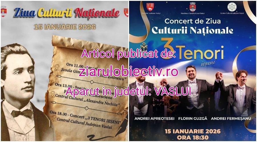Seara aduce o altă formă de sărbătoare: muzica. De la ora 18.30, la Centrul Cultural Județean Vaslui, publicul este invitat la evenimentul „3 TENORI IEȘENI”, o selecție de lucrări clasice celebre, interpretate într-o atmosferă de eleganță și emoție de tenorii Andrei Apreotesei, Florin Guzgă și Andrei Fermeșanu. Pe scenă va mai evolua și Orchestra Metropolitană Iași, sub bagheta dirijorului Marius-Mădălin Munteanu, într-un program gândit să ofere vasluienilor o experiență culturală completă.