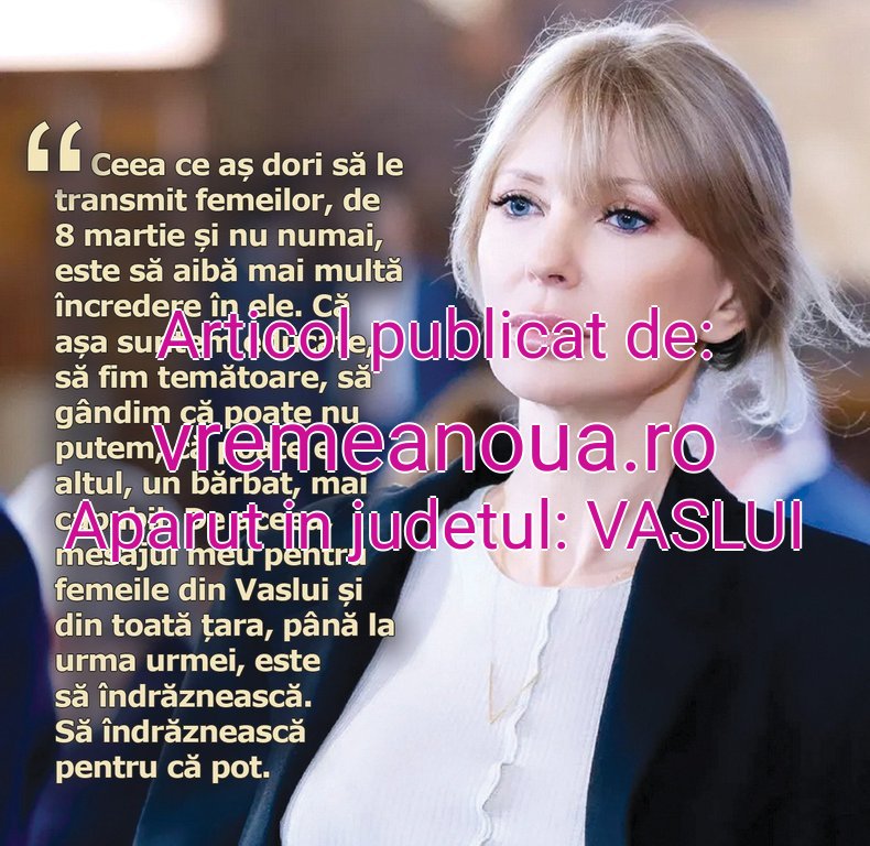 „Ceea ce aș dori să le transmit femeilor, de 8 martie și nu numai, este să aibă mai multe încredere în ele. Că așa suntem educate, să fim temătoare, să gândim că poate nu putem, că poate e altul, un bărbat, mai capabil. De aceea, mesajul meu pentru femeile din Vaslui și din toată țara, până la urma urmei, este să îndrăznească. Să îndrăznească pentru că pot”, este mesajul senatoarei Victoria Stoiciu.