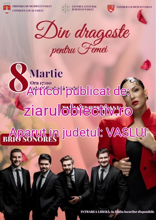 Municipiul Vaslui pregătește unul dintre evenimentele muzicale care au devenit tradiție cu ocazia Zilei Internaționale a Femeii. Pe 8 Martie, de la ora 17:00, la Sala Polivalentă, publicul este invitat la concertul „Din dragoste pentru femei”, ediția 2026 a Concertului Primăverii.