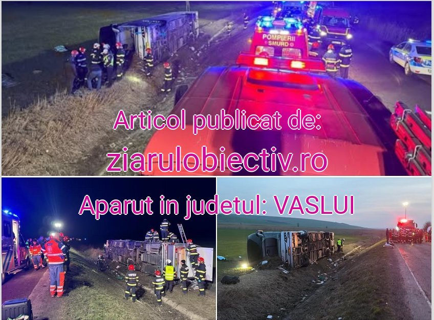 Potrivit datelor transmise de autorități, în accident au fost implicate 44 de persoane – 42 de călători și 2 conducători auto. Bilanțul este grav: un bărbat a fost declarat decedat, 14 persoane au fost transportate la unități medicale din Vaslui și Galați, iar alte 24 de persoane, care nu au avut nevoie de îngrijiri medicale, au fost preluate cu microbuzele ISU Vaslui și duse la Bârlad. Alte 4 persoane și-au continuat deplasarea spre București cu mijloace de transport proprii. Unul dintre conducătorii auto a rămas la fața locului.